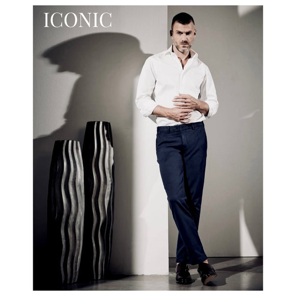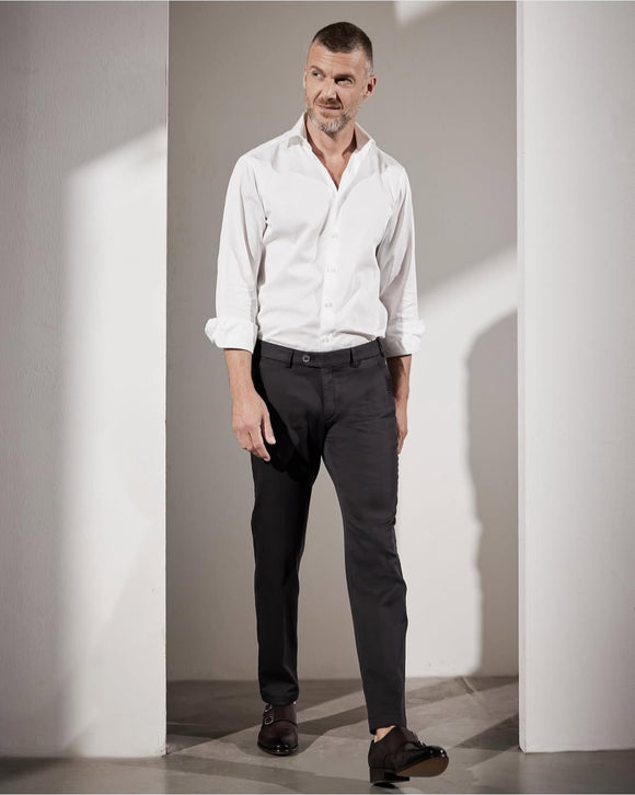 Hiltl Navy chino, soft satin bomuld i Modern fit