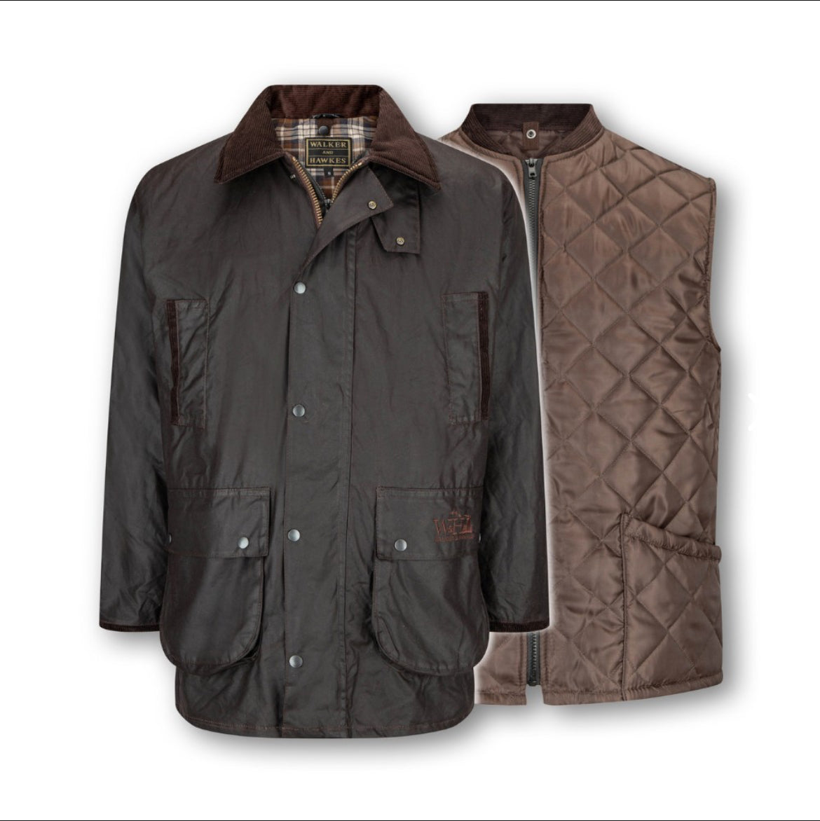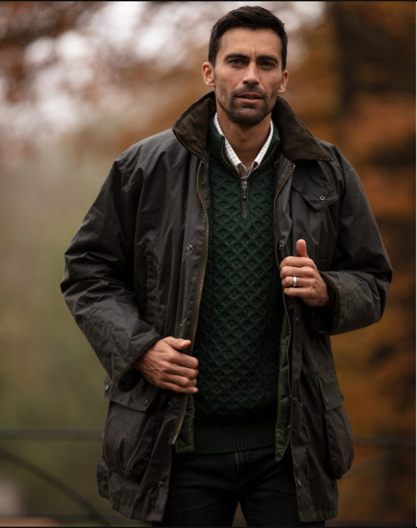 Jakken har et aftageligt indvendigt polstret lag, som kan bruges alene som quiltet vest på varme dage. Det kan sættes på igen indvendigt med lynlåse for at skabe en polstret voksjakke. Sammen med elastiske ærmegab, lommer til håndvarme og vindklap er dette perfekt til ekstra kolde dage. På varmere dage, hvor du stadig ønsker robustheden og vandtætheden fra en voksjakke, men uden ekstra vægt, kan du fjerne den indvendige vest. Ventilationshuller under armene og lommer gør jakken åndbar, så fugt slipper ud, og du forbliver så tør som muligt. Den voksbehandlede overflade gør jakken vandtæt, og med den aftagelige voksbehandlede hætte holder du dig tør i typisk britisk regnvejr.