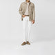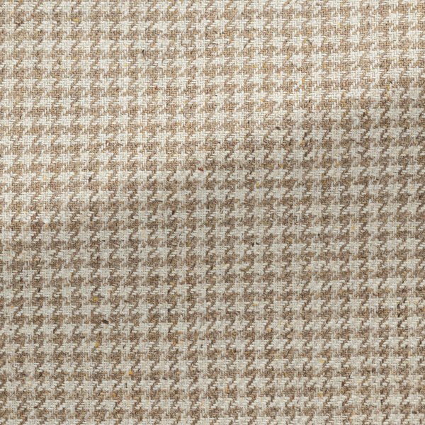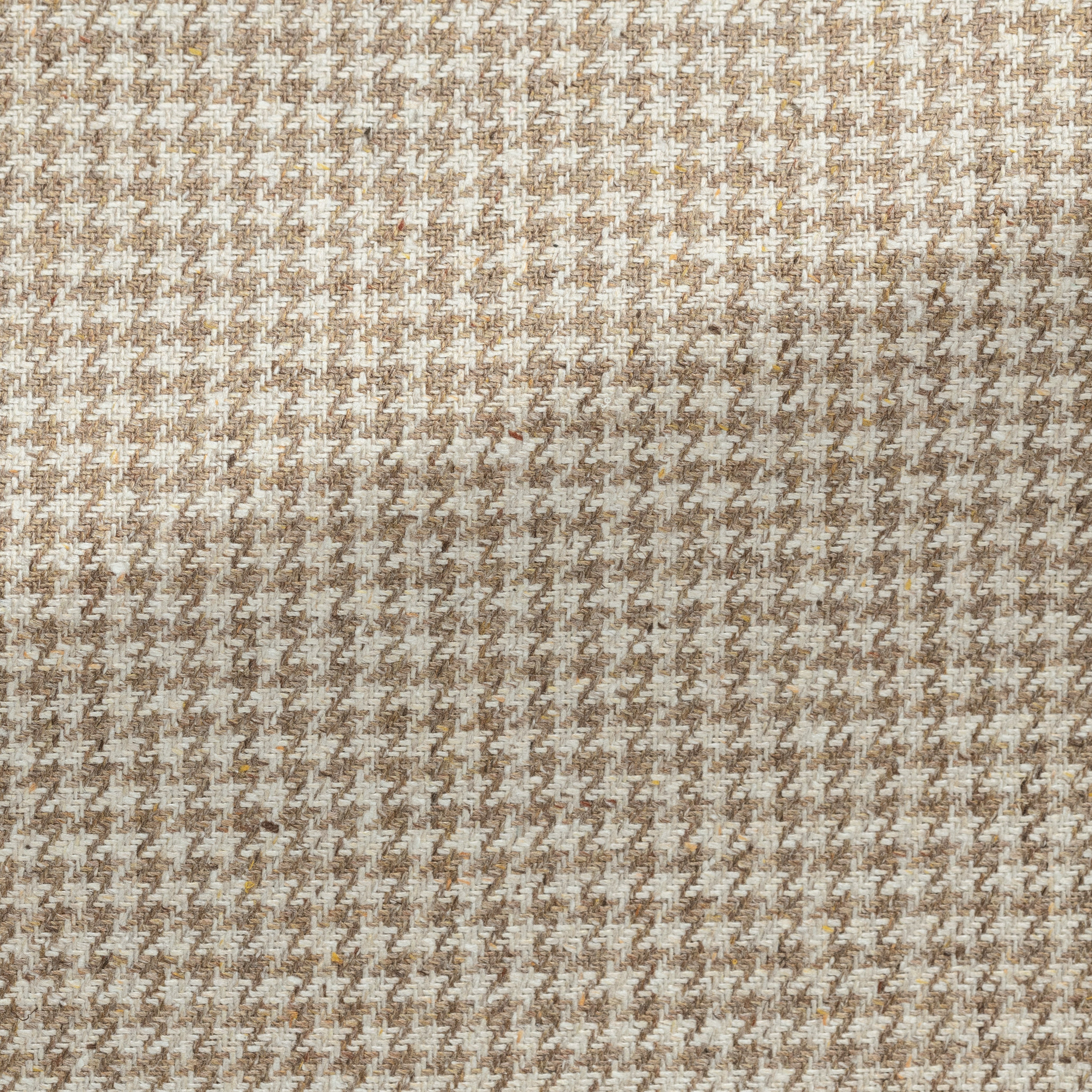 Et let men robust vævet stof med en fin sharkskin-struktur, der giver jakken et eksklusivt, let skinnende udtryk uden at virke blank. Kombinationen af silke og den diskrete beige houndstooth sikrer både åndbarhed, komfort og et raffineret visuelt spil i overfladen.